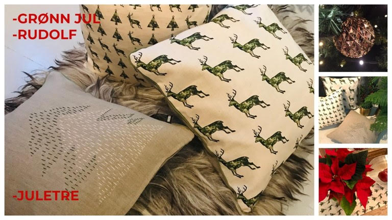 Jeg har kun to putetrekk av RUDOLF til kr. 690,- og GRØNN JUL til kr. 590,- til salgs på markedet, men tar bestillinger av alle mine design hele året rundt.